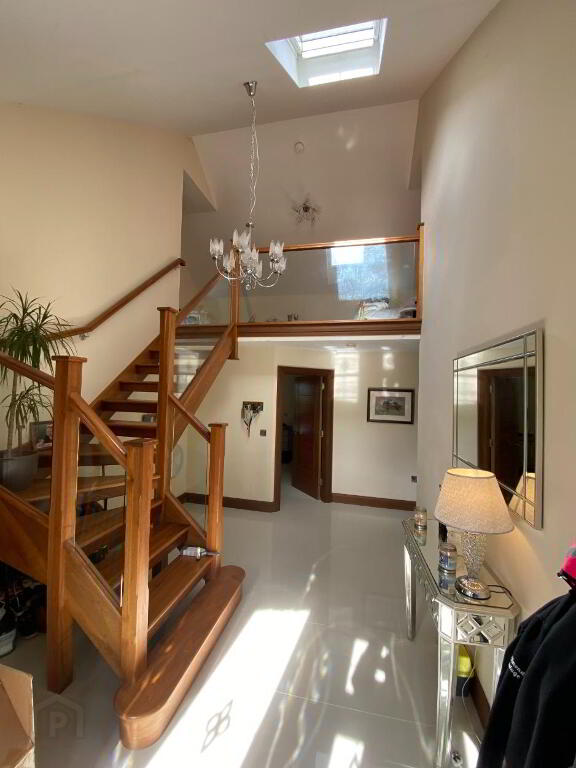 Entrance Hallway: 3.456m x 5.719m. Solid Front Door with glazing to sides with interlocking system. Cream Porcelain Tiled floor. Walnut Staircase with recessed glass. Alarmed.