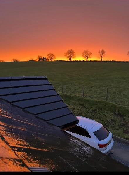 Outside: Large garden to rear. Gravelled access laneway (privately owned). Tarmac driveway/parking at front of house. . At the top of Driveway there is a small plot of ground currently used for grazing. Fenced boundary. Paved patio area to side and rear. Surrounding countryside views. Plans for a detached Garage.
