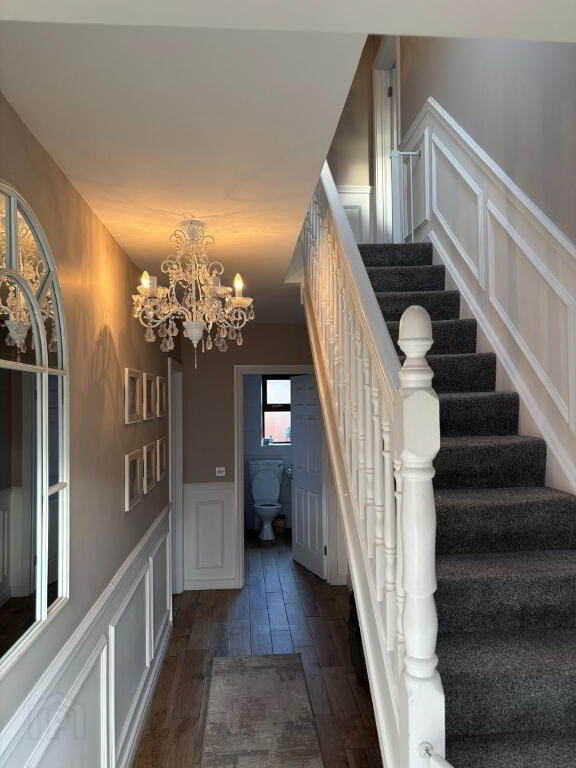 RECEPTION HALL Tiled floor, feature wall panelling to hall and to side of stairs to first floor. Storage.