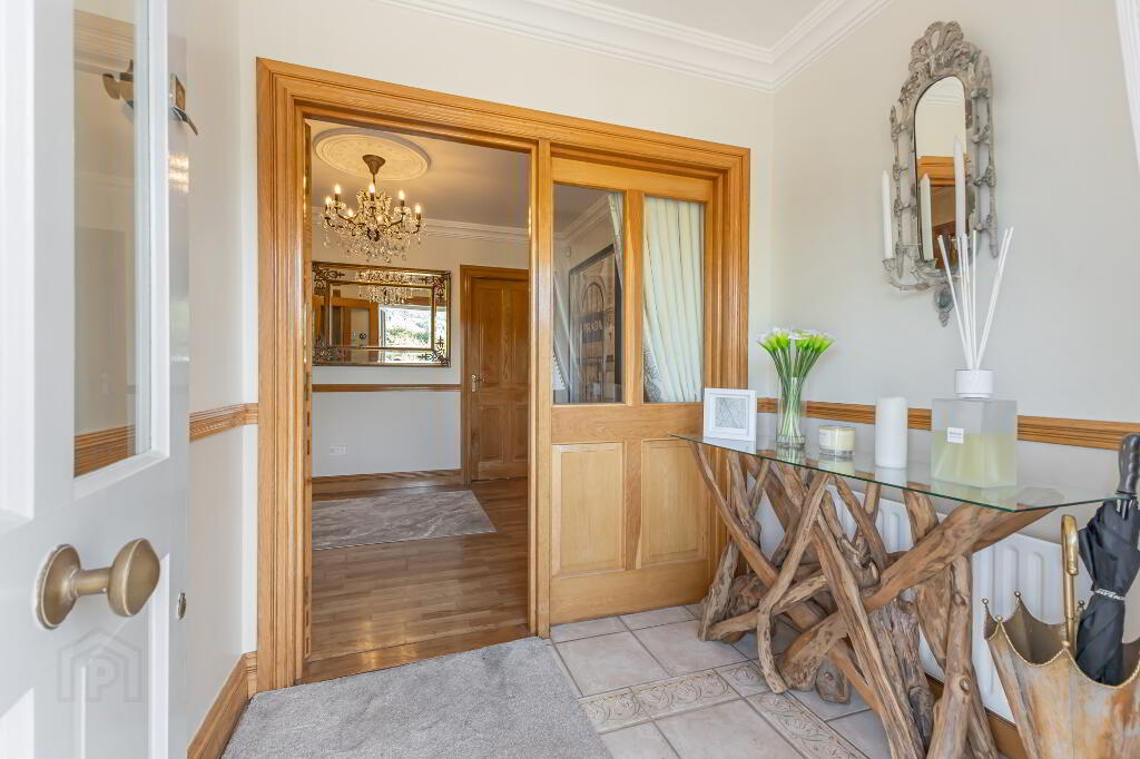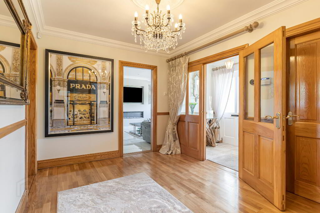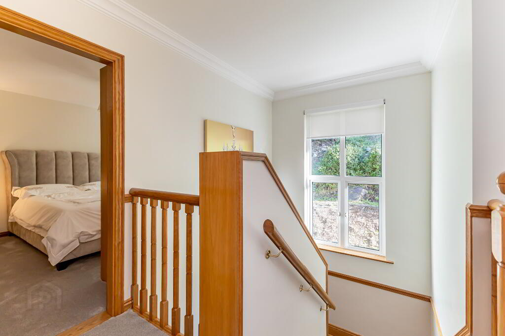 The extensive front paved driveway with an automated sliding gate adds to the high specification and quality of the finishes throughout the property and is complimented by a private rear garden/wooded area.